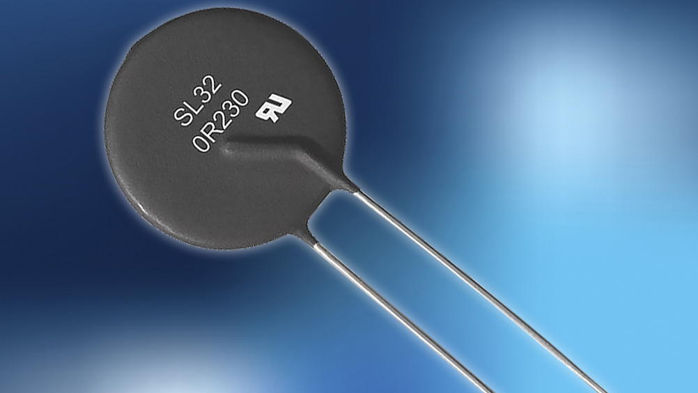 The new SL32 0R230 released today is the only UL-approved circuit protection thermistor on the market with a maximum continuous current rating of 30 A and “hot” resistance on the order of just 6 mΩ. This capability minimizes voltage drop to a range of 0.18 V to 0.30 V, which helps to maximize battery life and conserve power in applications such as inverters and motor drives.