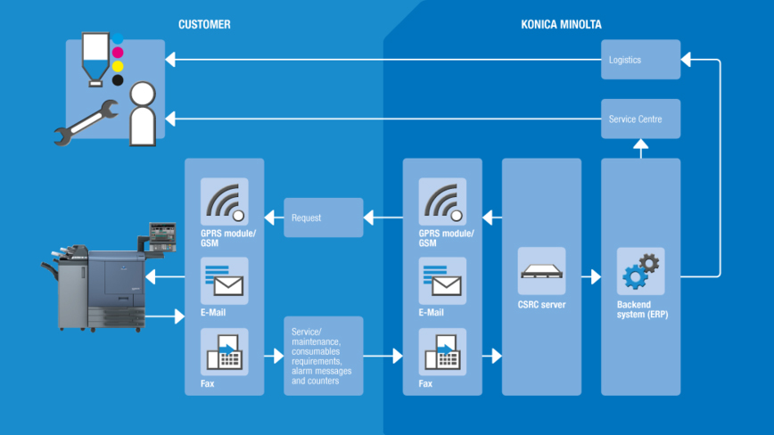 CS Remote Care Global Services comes as an automated monitoring and communication solution which serves as a bridge between Konica Minolta’s output devices and Konica Minolta Service Organisation. It also provides alerts to user/ service support team in case of consumable replacement requirement and technical errors in the machines.