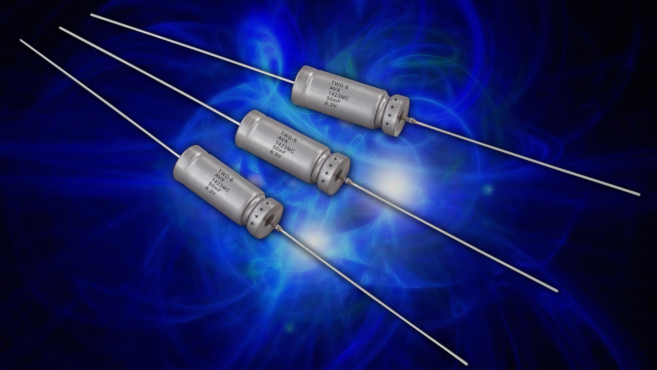 AVX Corporation, a leading manufacturer of passive components and interconnect solutions, has released a new series of axial leaded, hermetically sealed wet electrolytic tantalum capacitors that achieve supercapacitor CV values in high temperature environments up to 125°C. Utilizing high CV tantalum powders and a well-established wet tantalum design, TWD High Temp Max Cap (HTMC) Series capacitors deliver exceptional electrical and mechanical stability, achieving extended operational lifetimes of up to 10,000 hours at 85°C, rated voltage. Combined with extremely high capacitance values spanning 25mF to 50mF and a wide operating temperature range spanning -55°C to +125°C, the extended endurance of the new TWD HTMC Series capacitors makes them ideal for use in DC hold-up and low frequency pulse circuitry in avionics, defense, specialized industrial, and other high reliability applications that require high capacitance at higher temperatures and for longer lifetimes than EDLC (electric double-layer capacitor) supercapacitor technologies can currently deliver.