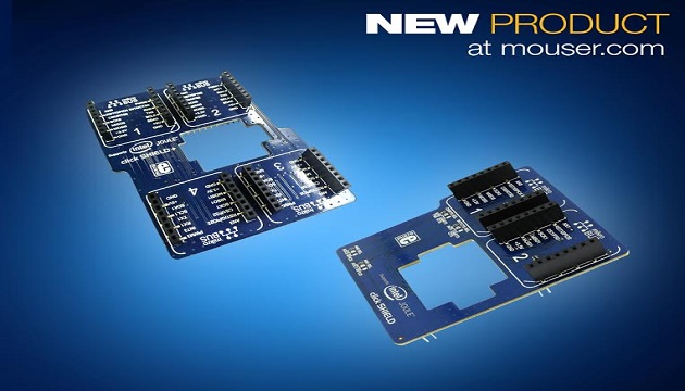 Engineers can now add up to four MikroElektronika click boards to Intel Joule Expansion Board for Internet of Things (IoT) and smart device applications, with the new Intel Joule click shields from MikroElektronika, available at Mouser.