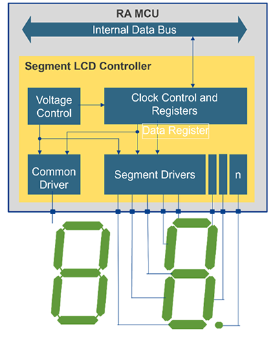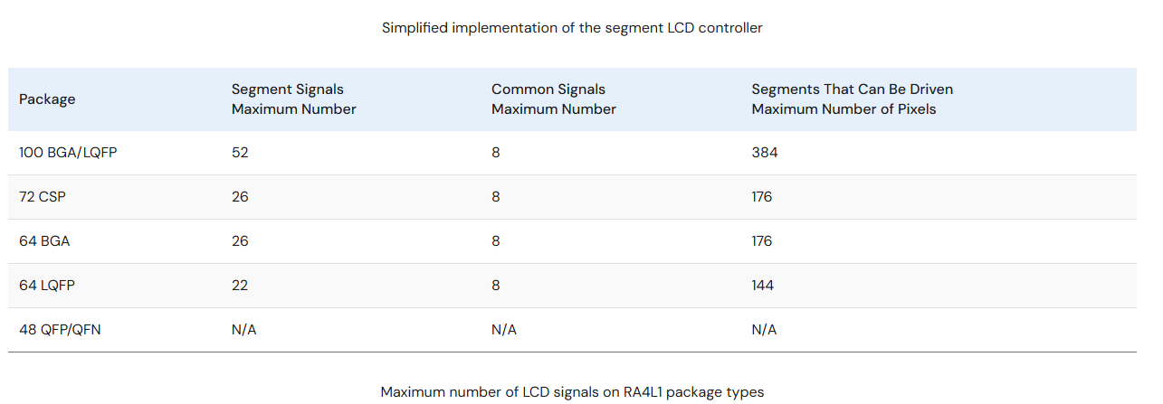 One of the key features of the RA4L1, often required in low-power applications such as smart meters and smart thermostats, is the segment LCD controller. It is designed to operate in the lowest power modes of the RA4L1 while being capable of driving a segment LCD with up to 384 segments.