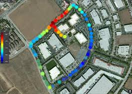A Typical Coverage Drive Map Result Highlighting Different Channel Power Levels along the Route