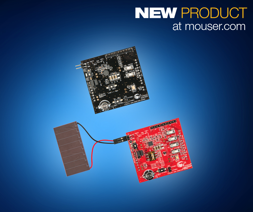 Mouser Electronics, Inc. is now shipping the CYALKIT-E04 S6AE102A and S6AE103A evaluation kit (EVK) from Cypress Semiconductor. The kit allows engineers to quickly and easily develop battery-free applications with an energy-harvesting device using Cypress’ ultra-low-power, energy-harvesting S6AE102A and S6AE103A power management ICs (PMICs).
