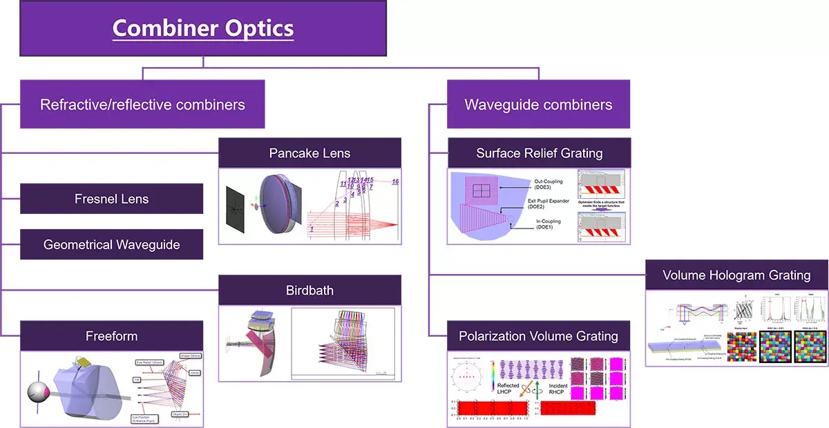 Combiner optics are essential components in XR devices. These optics merge the virtual world with the physical environment, allowing users to see digital content overlaid on real-world scenes. The combiner optics in XR devices include refractive/reflective combiners and waveguide combiners, each offering unique advantages for different applications.