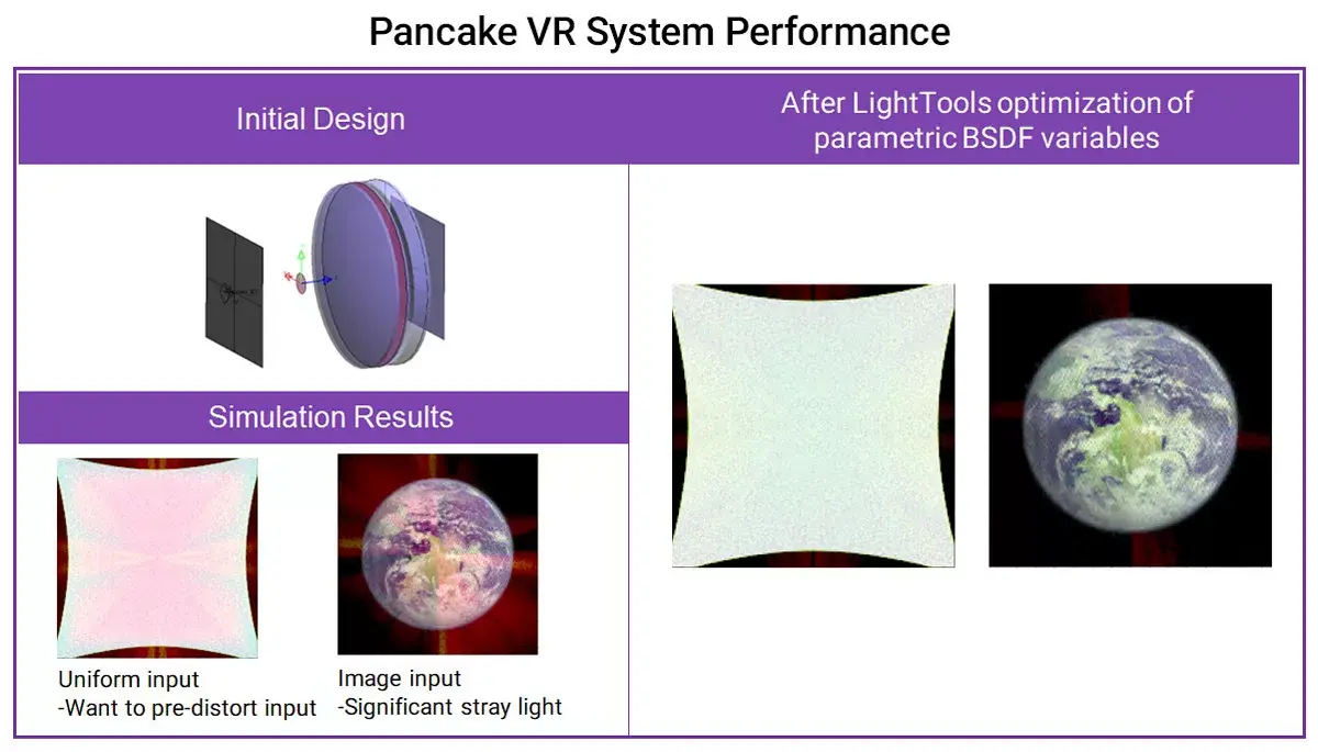 In addition to quantitative analysis, LightTools can optimize the system. The significant stray light of the starting pancake VR system is greatly reduced by optimization of the coating.