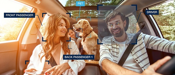 The VB1940 / VD1940 demo is a driver monitoring system (DMS) and occupant monitoring system (OMS). The VD1940 is a 5.1-megapixel RGB-near infrared sensor with a resolution of (2560 x 1984). The VB1949 is identical but in an OBGA package, while the VD1940 is the die that customers acquire to put in their packaging. The demonstration simulates an in-cabin experience where the camera detects faces and their place in the vehicle.
