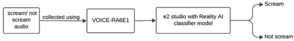 Audio signals are collected from the real-world environment to create the Renesas VOICE-RA6E1 Voice User Demonstration Kit. These audio signals are then processed by Renesas’ Reality AI-trained classifier model, which helps in distinguishing between “scream” and “non-scream” audio sounds.