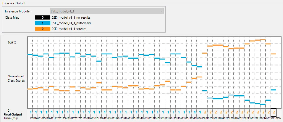 The deployed model can be integrated for live testing using the e² studio IDE. After integration, the model can be extensively tested in a live setting using the VOICE-RA6E1 board, and the live results can be visualised using the AI live monitor.