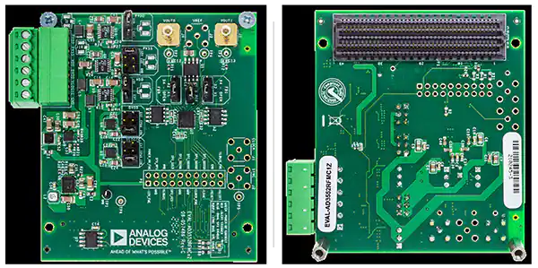 Simulations are extremely useful and necessary, but as any experienced engineer knows, they cannot fully replace a real-world evaluation, especially when factors such as parasitics outside the device can affect performance. For the AD3552R, this need is met using the EVAL-AD3552RFMCxZ, which is available in two variants: the EVAL-AD3552RFMC1Z for higher speed, and the EVAL-AD3552RFMC2Z for higher precision (Figure 4).