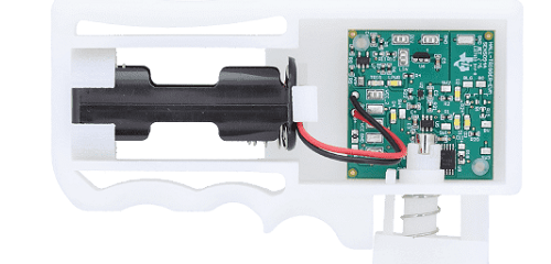 Another benefit of using a contactless trigger design is the option to use low-power Hall-effect switches along with a load switch to keep the system in a low-power standby mode when not pressed. As outlined in the Contactless Hall-Effect Variable-Speed Trigger Reference Design with External Field Protection, you can also implement an optional magnetic field protection feature to prevent external magnetic fields from influencing the speed control. Figure 2 shows an implementation of this reference design in 3D-printed mechanical housing to create a complete contactless trigger system.