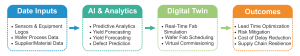AI tools like Bayesian models and reinforcement learning push fabs toward self-regulation—the factory learns to heal itself. The workflow below shows how AI twins turn raw data into better supply chain outcomes.