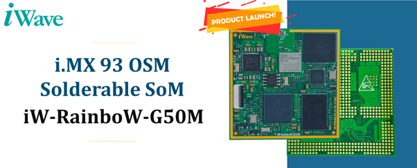 iWave launches iW-RainboW-G50M: The Solderable NXP i.MX 93-based LGA System on Module (SoM). The SoM incorporates NXP’s powerful i.MX 93 applications processor and is built on the OSM v1.1 solderable SoM standard, providing extensive interfaces in a rugged and compact form factor.
