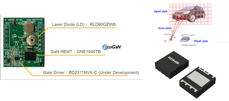 With the increasing application and introduction of LiDAR in the future, ROHM has introduced a variety of solutions such as laser diodes, GaN HEMT (EcoGaN) and gate drivers for GaN driving, which are key parts for improving LiDAR characteristics. ROHM has introduced reference designs as design references to accelerate the market introduction process of products for users.
