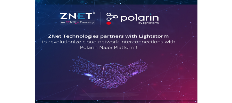 Lightstorm, a digital infrastructure provider, announced its partnership with ZNet Technologies Private Limited, India’s leading cloud distributor offering cloud infrastructure and managed services, for its newest offering Polarin; a Network-as-a-Service (NaaS) platform designed to cater to cloud-native, forward-thinking businesses, offering a diverse range of connectivity solutions, granting unparalleled control and visibility over network design, deployment, and scaling.