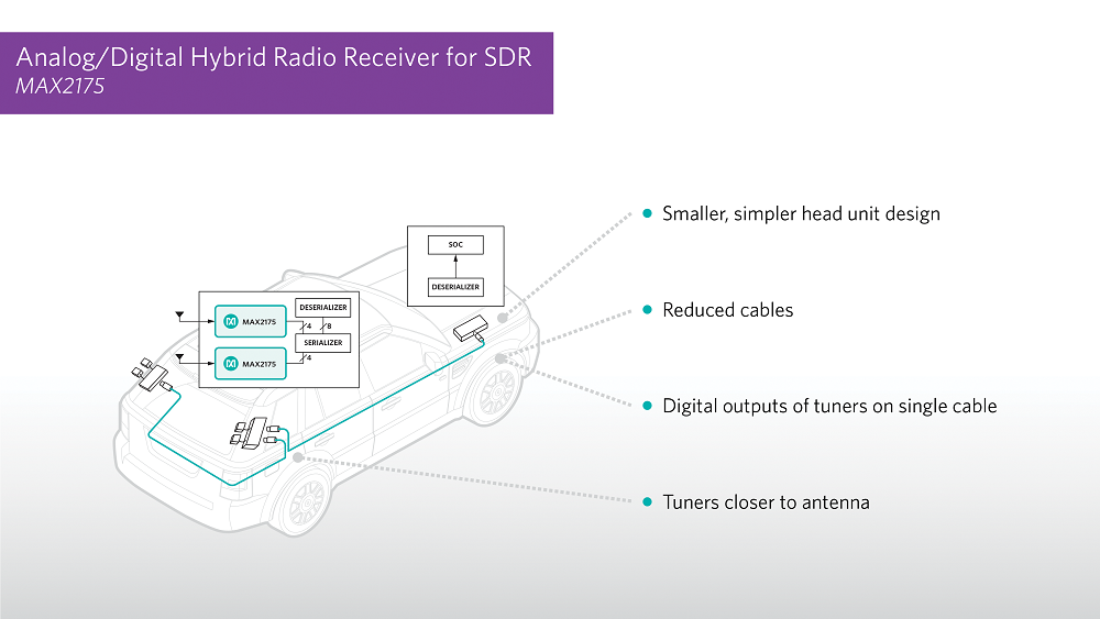 MAX2175 RF to Bits® tuner-based solution reduces cables and simplifies vehicle head unit design