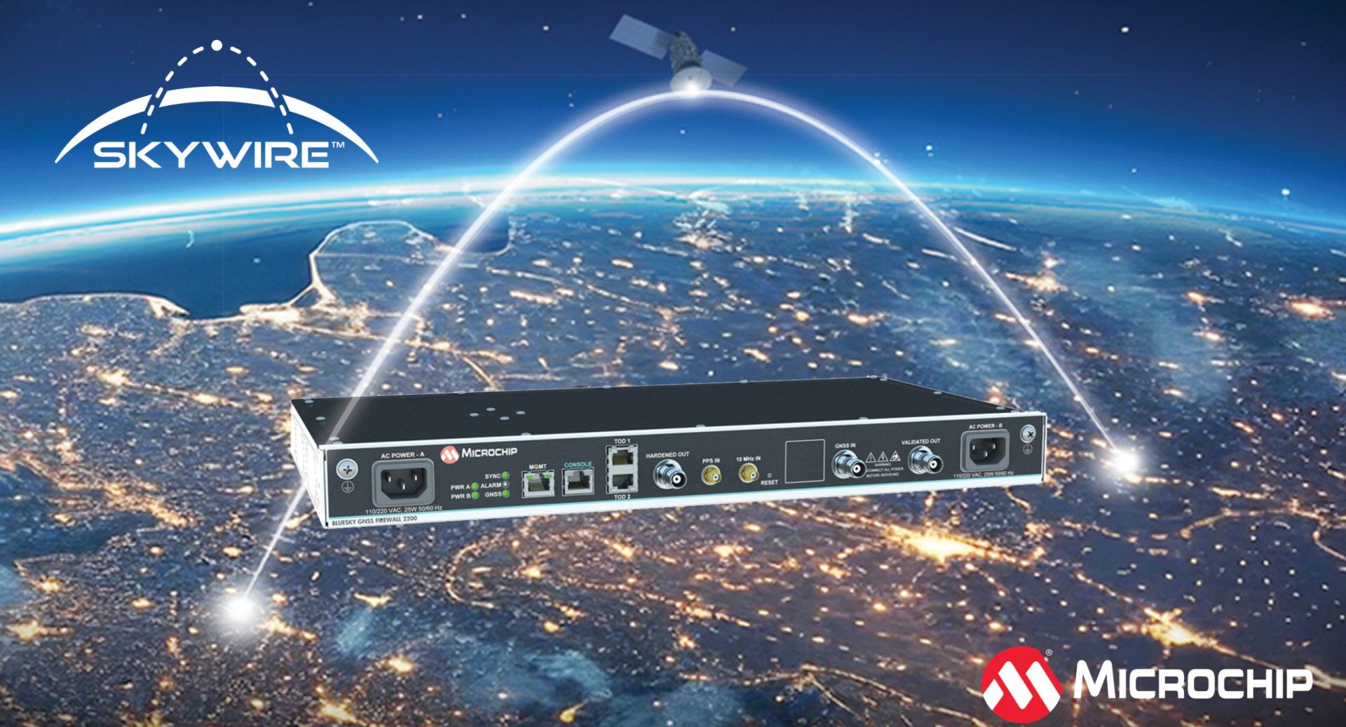 With the BlueSky GNSS Firewall 2200 and SkyWire technology, geographically dispersed timing systems can be compared to each other and compared to the time scale systems deployed at metrology labs within nanoseconds. Measurement of clock alignment and traceability to this level has typically only been done between metrology labs and scientific institutes. With Microchip’s solution, critical timing networks for air traffic control, transportation, public utilities and financial services can achieve alignment within nanoseconds between its clocks to protect their infrastructure no matter where the clocks are located.