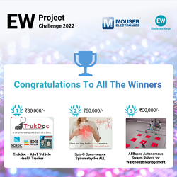 Mouser Electronics, the New Product Introduction (NPI) leader empowering innovation, in association with ElectronicWings proudly announced winners for the ElectronicWings Project Challenge 2022, a global design contest aimed at benefiting society through innovation in sustainable and efficient technologies. This year’s contest kicked off in April, with Mouser as the primary sponsor. The purpose of the contest is to drive innovation that can advance agri-tech, automation and manufacturing, transportation and logistics, community development, healthcare, and environmental protection.