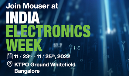 Mouser Electronics, the New Product Introduction (NPI) leader with the widest selection of semiconductors and electronic components, is proud to be the Networking Partner for India Electronics Week, the leading B2B Tech Expo targeting emerging technologies such as IoT, embedded systems, AI and ML. Occurring 23 to 25 November at KTPO Bengaluru, India Electronics Week focuses on electronics as an enabler of smart solutions and new technology. Mouser is exhibiting at Booth B10 and is powering the networking hotspots throughout the week.