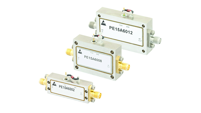 Pasternack’s five models of limiting amplifiers include the PE15A6002 which features 60 dB of gain and supports 1 GHz to 2 GHz frequency range; the PE15A6015 which features 40 dB of gain and supports 2 GHz to 4 GHz; the PE15A6007 which features 80 dB of gain and frequency range of 2 GHz to 6 GHz; the PE15A6008 which features 40 dB of gain and a frequency range of 2 GHz to 8 GHz; and the PE15A6012 which offers 40 dB of gain and a frequency range of 6 GHz to 18 GHz.