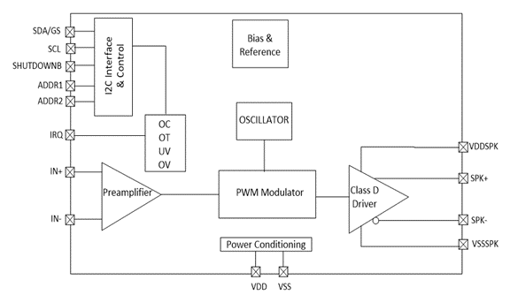 The new Class-D audio amplifier is designed for consumer electronics applications including Bluetooth speakers, wireless doorbells, outdoor surveillance systems, and handheld gaming consoles.