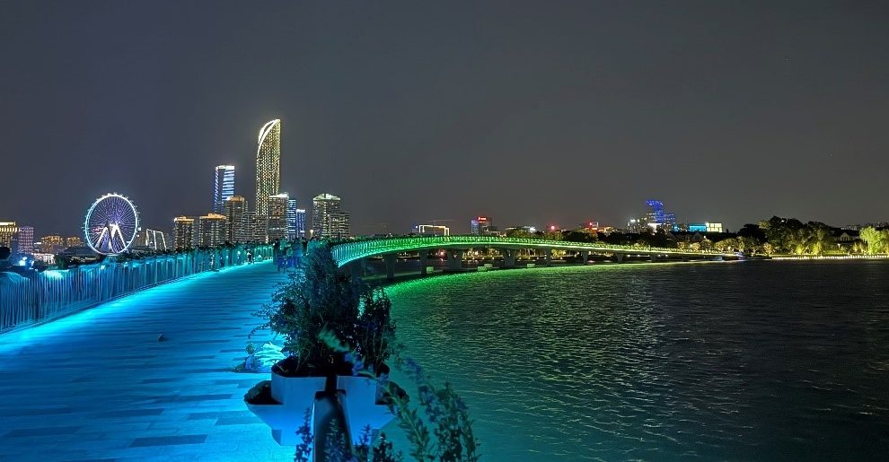 The Jinji Lake Luminous Trail was a key urban renewal project for the Suzhou Industrial Park in 2024. It involved upgrading the lighting systems of the Jinshuiwan Trestle Bridge and the lakeside walkways. By integrating technologies such as smart running poles and Bluetooth sensors, two distinctive trails were created: a 15 km smart running trail and a 3.5 km light-chasing interactive trail. The former combines smart planning and AI cameras to enable light interaction and cultural tours, while the latter utilizes DMX512 and Bluetooth dual-mode control, allowing users to select lighting effects via a mobile app for an immersive and interactive experience.