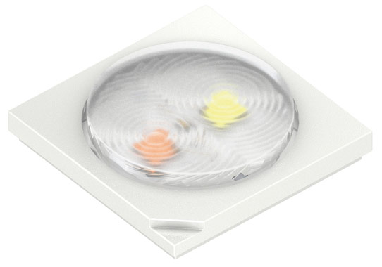 The integration of two LED chips and a silicone lens in one module offers benefits in video lights and camera flash applications. Now, no separate step is necessary for optimum positioning of the lens, which saves time and optimizes the use of the generated light. While dimensions of 5.0mm x 5.0mm x 1.15mm make the Oslux S 2.1 with its lens slightly taller than previous models, it requires less space on the board and has a smaller exposed aperture than two single LEDs, making it more compact overall. The silicone lens also allows the module to be reflow solderable, allowing the module to be easily integrated into standard manufacturing flows.