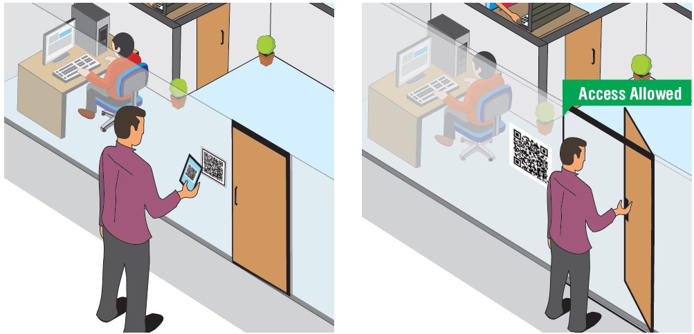 - User has to scan QR Code given by the door using COSEC APTA application from a Mobile phone registered with the COSEC CENTRA server.