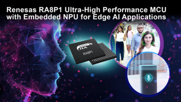 Renesas Electronics Corporation introduced the RA8P1 microcontroller (MCU) Group targeted at Artificial Intelligence (AI) and Machine Learning (ML) applications, as well as real-time analytics. The new MCUs establish a new performance level for MCUs by combining 1GHz Arm Cortex-M85 and 250MHz Cortex-M33 CPU cores with the Arm Ethos-U55 Neural Processing Unit (NPU). This combination delivers the highest CPU performance of over 7300 CoreMarks and AI performance of 256 GOPS at 500 MHz.