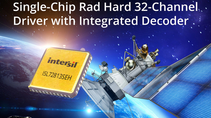 Intersil Corporation, a leading provider of innovative power management and precision analog solutions, today introduced a radiation hardened 32-channel driver with integrated decoder that reduces the size, weight and power (SWaP) of satellite command and telemetry systems. The ISL72813SEH is the industry’s first high current driver to integrate the decoder, level shifter and driver array in a single monolithic IC, allowing satellite manufacturers to significantly increase system capacity and reduce solution size by up to 50%. The device offers a 4x higher density channel count compared to the nearest competitor, and the integrated level shifter eliminates several peripheral components.