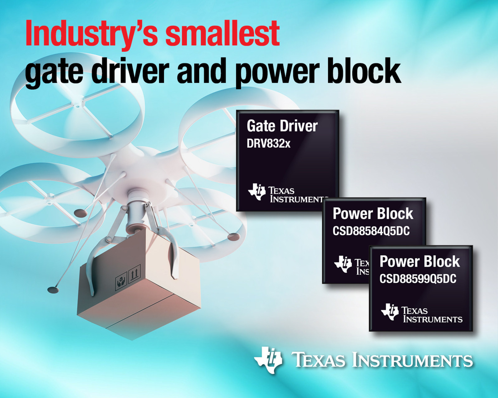 Texas Instruments (TI) on May 25, introduced two new device families that help reduce size and weight in motor drive applications. When used together, DRV832x brushless DC (BLDC) gate drivers and CSD88584/99 NexFET Power Blocks require as little as 511 mm2, half the board space of competing solutions.