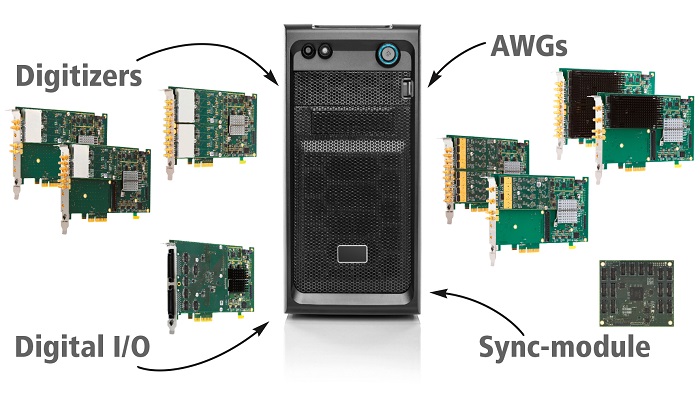 To acquire or generate analog signals with outstanding accuracy and resolution, the digitizer and AWG cards all use cutting-edge 16-bit technology. Individual cards offer one, two, four or eight fully synchronized channels and are available with a choice of speed grades. The digitizers offer sampling rates that go up to 5, 20, 40, 80 or 125 MS/s, while the AWGs have maximum output rates of 40, 80 or 125 MS/s.