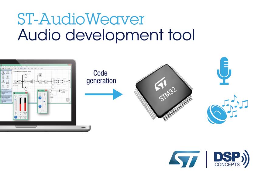 ST has worked with DSP Concepts, creator of the Audio Weaver design suite, to present a free version of the tool – ST–AudioWeaver – for developers using its 32-bit ARM Cortex-M based STM32 microcontrollers. Audio Weaver enables product designers to build complex digital audio applications without coding. Developers simply choose the required audio modules from a library, connect them graphically, and adjust them by live-tuning on the target hardware. Examples are included, which accelerate learning and help jump-start new projects.