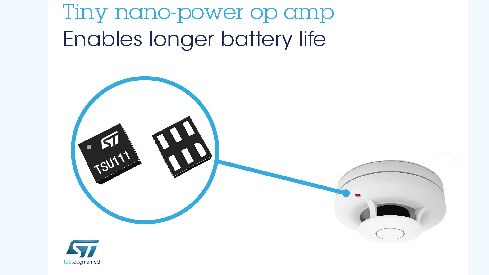 At the same time, the TSU111 outperforms other nano-power opamps with its input-offset voltage of 150uV and 0.1-10Hz noise of 3.6µVp-p that ensure high accuracy in signal-conditioning circuits.