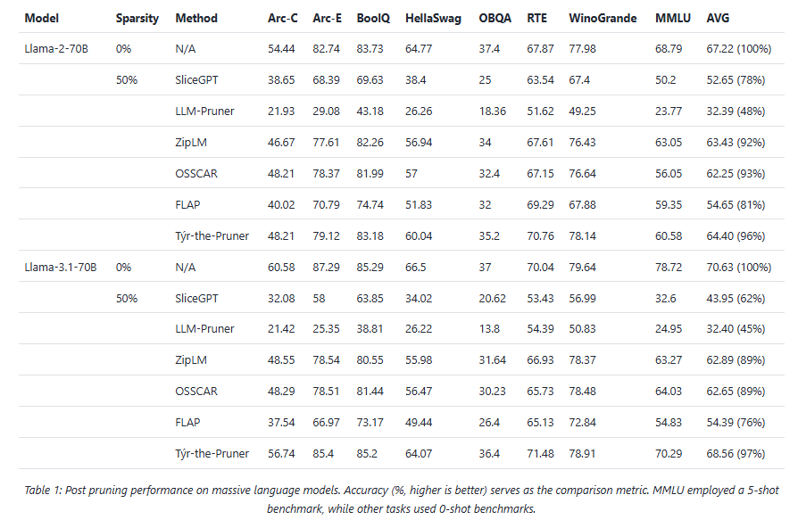 With up to 50% parameter reduction and ~97% accuracy preserved on Llama-3.1-70B, Týr-the-Pruner demonstrates that global pruning can be both principled and practical—setting a new benchmark for structured pruning in the era of large-scale LLM deployment.
