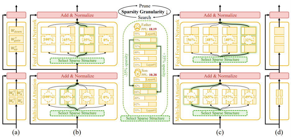 This design steadily narrows the search, accelerates convergence, and efficiently uncovers the optimal global sparsity distribution.