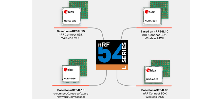 u-blox a global leader in positioning and short-range communication technologies for automotive, industrial, and consumer markets has expanded its portfolio by introducing six new variants of the NORA-B2 Bluetooth Low Energy modules. Now integrating the entire range of Nordic Semiconductor’s next-level nRF54L Series of ultra-low power wireless Systems-on-Chip (SoCs), NORA-B2 offers a versatile solution for mass market segments thanks to its choices of antennas, architectures and chipsets.
