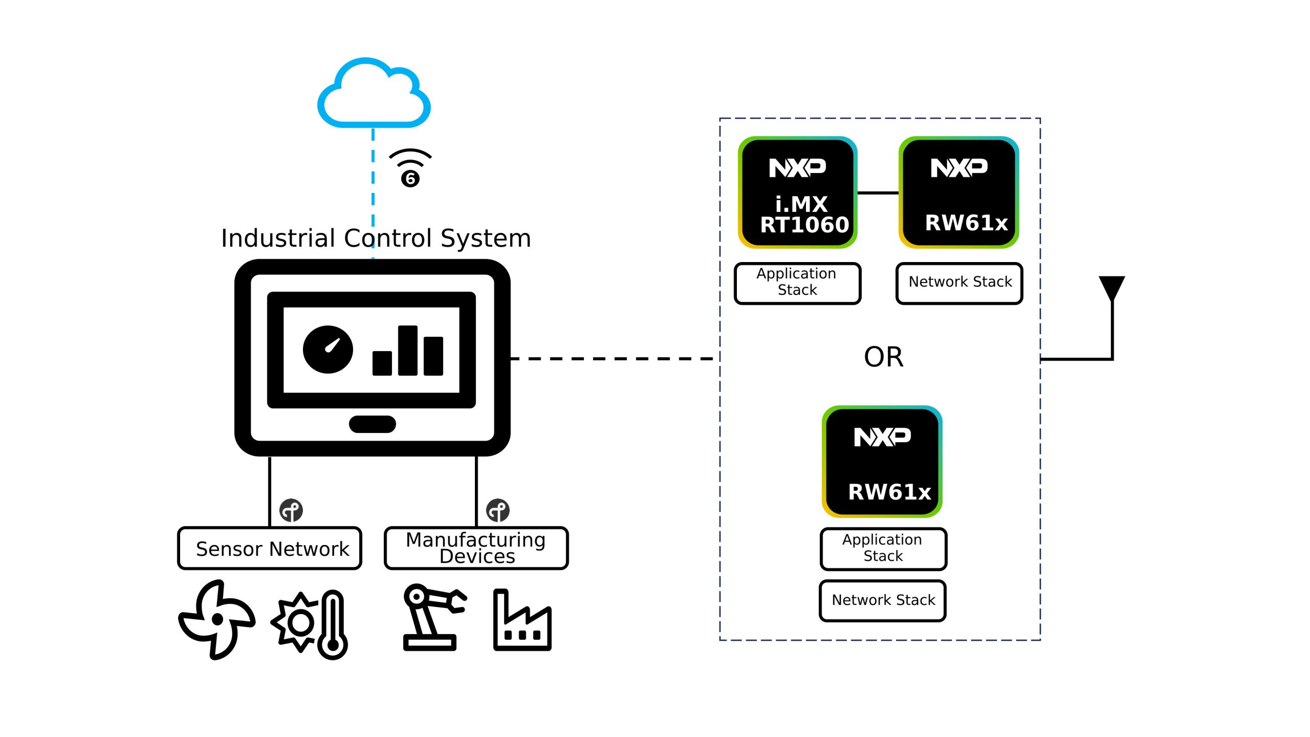 Industrial infrastructure encompasses different interconnected components—such as sensors, end-nodes, controllers, and processors—that are connected over Wi-Fi, Bluetooth, or 802.15.4 (Thread, Zigbee, Matter). IIoT solutions require interoperability among these devices along with robust performance across these wireless protocols. NXP’s Wireless Connectivity Solutions provide a range of devices that enable the co-existence of three leading radios—Wi-Fi, Bluetooth, and 802.15.4—making sensor-to-cloud communication seamless and unlocking the full potential of Industrial IoT.