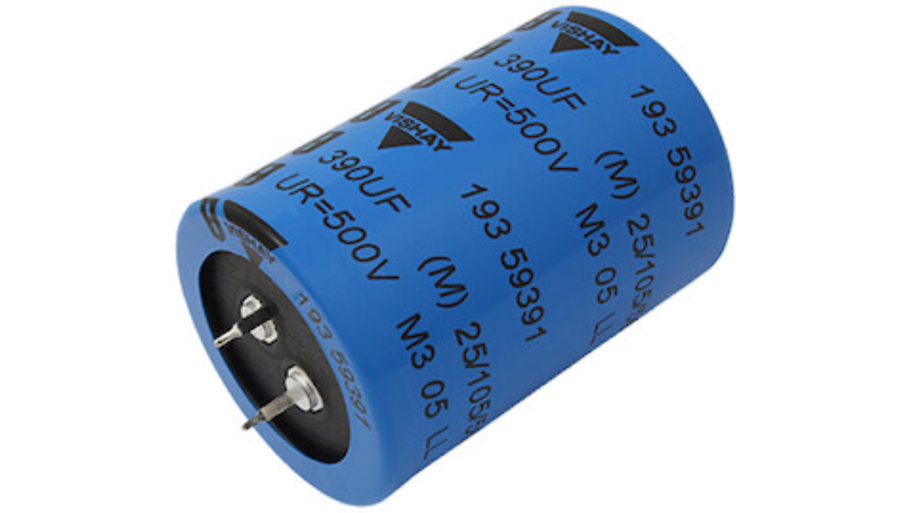 Vishay Intertechnology has extended its 193 PUR-SI series of miniature snap-in power aluminium electrolytic capacitors with new voltage ratings of 550 V and 600 V. Traditionally, designers have used three 400 V to 450 V capacitors in series, with voltage balancing resistors across each device, to handle DC bus voltages up to 1100 V — an approach that adds design complexity and potential failure points. But with Vishay’s higher voltage ratings up to 600 V, the enhanced 193 PUR-SI series devices released allow designers to achieve this voltage range with fewer components, while eliminating the need for voltage balancing circuits — saving PCB space and reducing BOM costs. In addition, the added voltage headroom extends capacitor lifetimes and enhances overall system reliability.