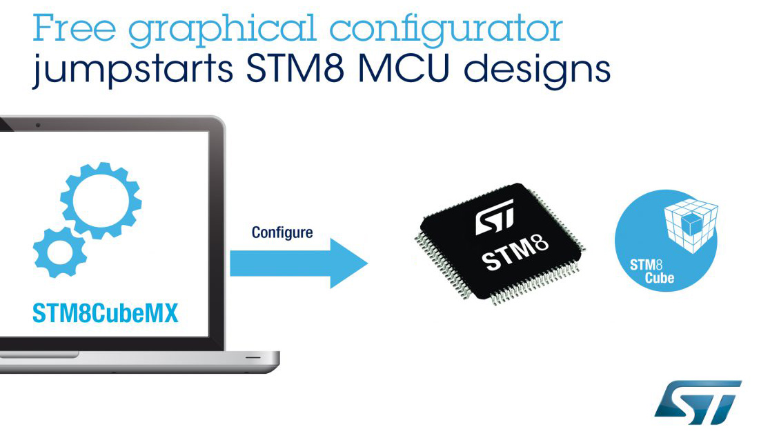 STMicroelectronics has made starting new designs with its popular 8-bit STM8 microcontrollers easier and faster by introducing the STM8CubeMX graphical configurator.